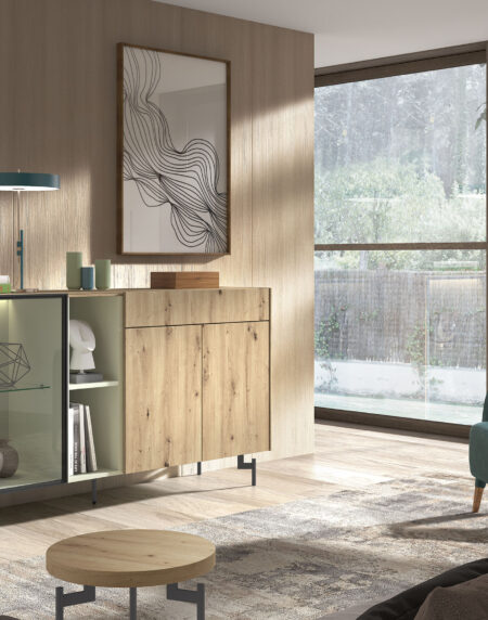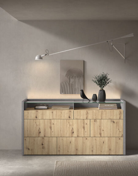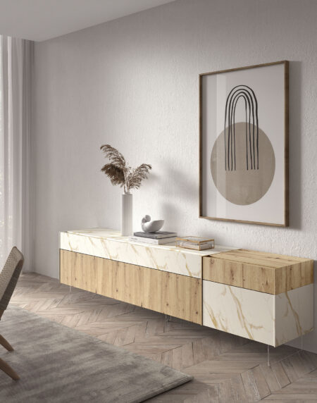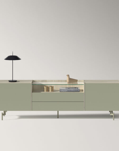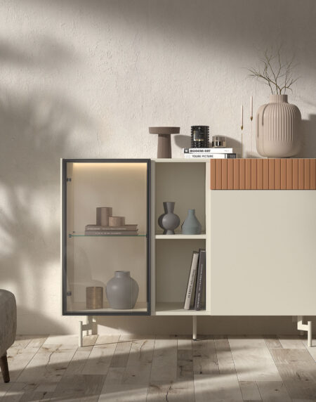 Un aparador con mucho carácter y un diseño exclusivo. Será el centro de todas las miradas. Laterales bicolor para configurar infinidad de opciones y un efecto de doble modulación.