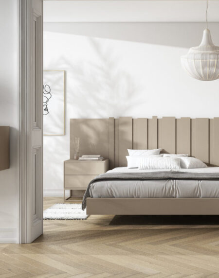 Este conjunto de dormitorio de matrimonio destaca por su equilibrio entre materiales naturales, texturas suaves y un diseño contemporáneo con personalidad propia.