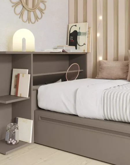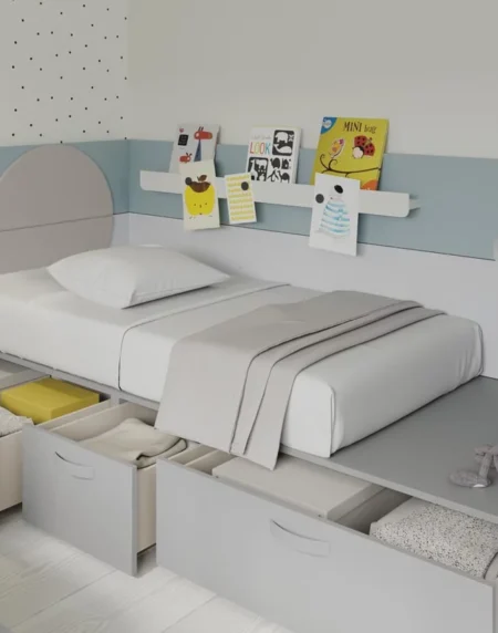 Para esta habitación hemos elegido una cama compacta con uno cajón.