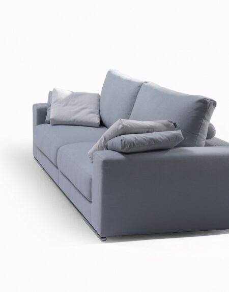 El sofá GIN es un sofá deslizante premium con estructura de madera de pino y recubierta de espuma de poliuretano de 25 Kg. En sus asientos tiene doble cojín 60% viscoelástica y 40% fibra y sus respaldos son reclinables con un cabezal metálico.