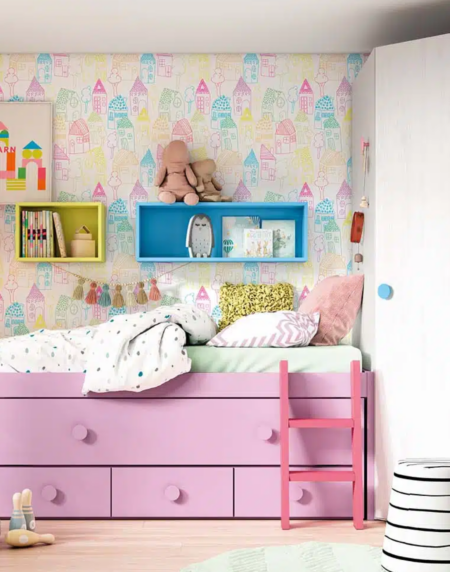 En esta habitación vemos una cama compacta infantil con escalera para que subir sea mucho más fácil