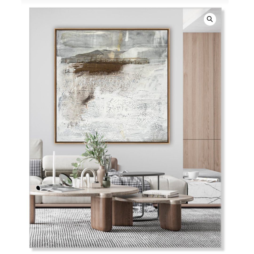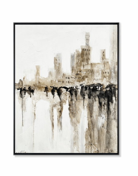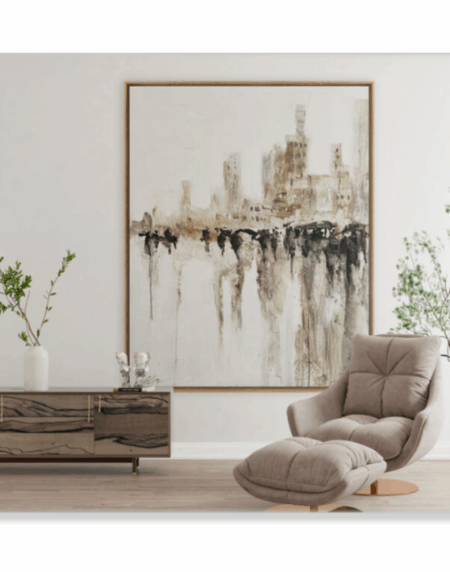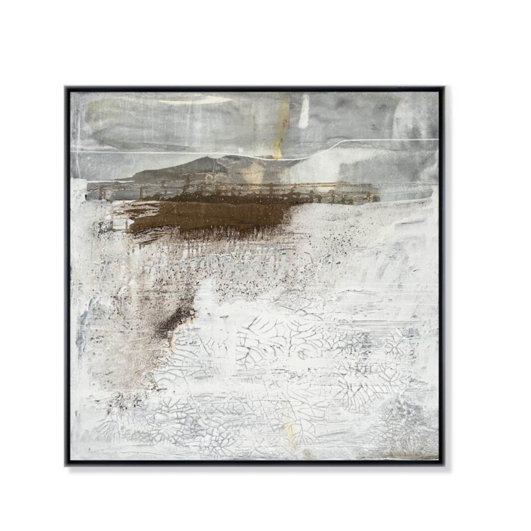 Obra abstracta con una composición de texturas orgánicas y tonos neutros. Su acabado sofisticado y sus sutiles contrastes crean un efecto elegante y armonioso, ideal para espacios modernos.
