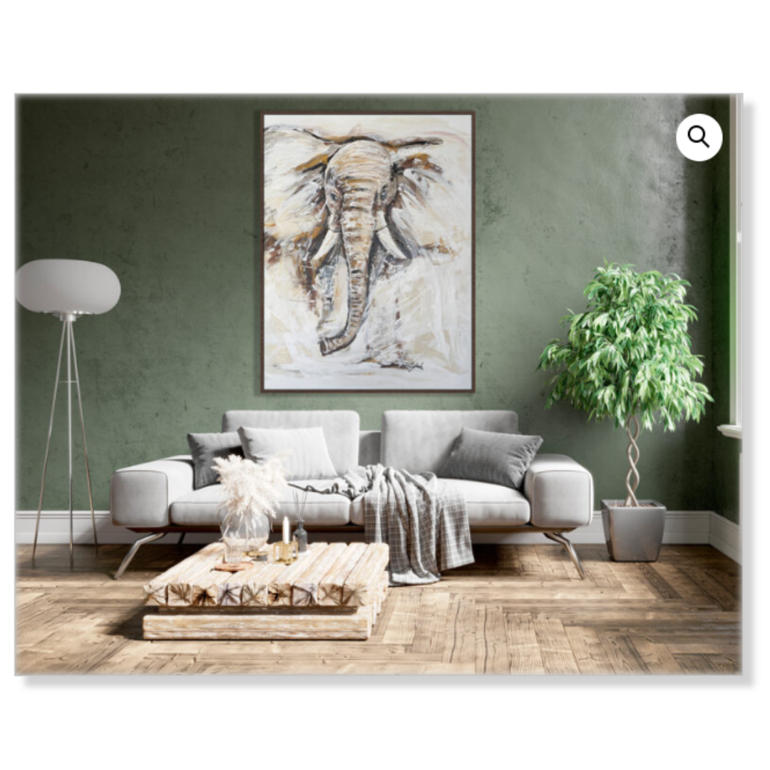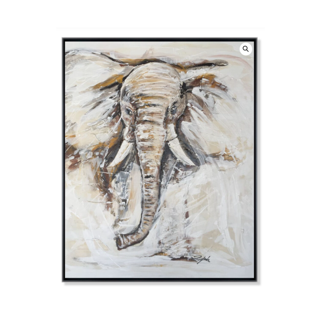 Cautivadora pintura abstracta de un elefante renderizado en tonos tierra, perfecta para interiores premium que buscan un toque salvaje. Ideal para salones, lobbies o espacios boutique.