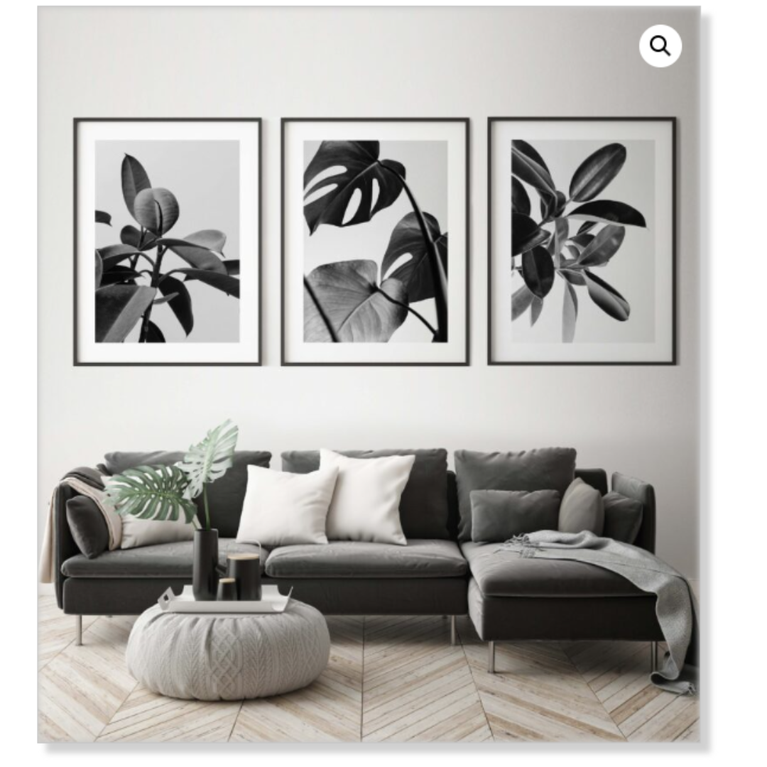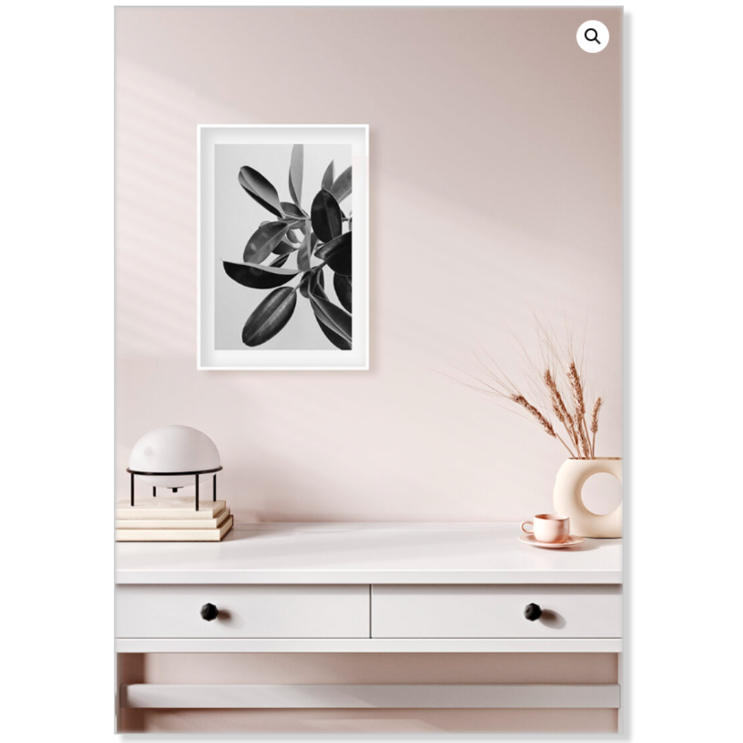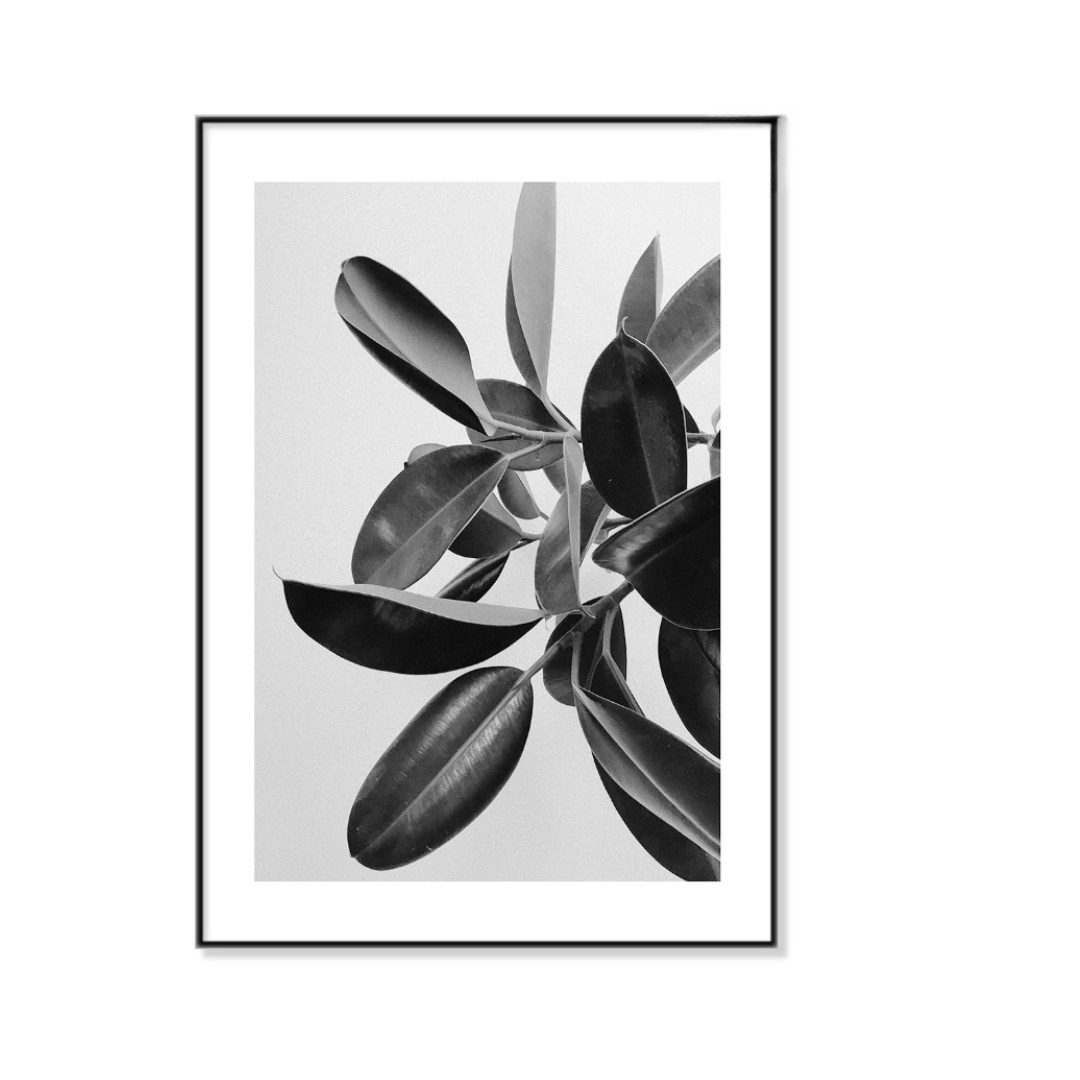 Ilustración moderna en blanco y negro de hojas que acentúa un estilo minimalista. Perfecta para entornos contemporáneos que buscan serenidad y elegancia.