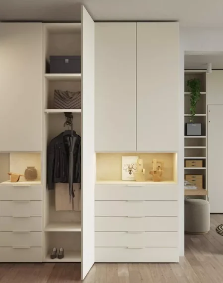 Ahora ya estamos en disposición de elegir por ejemplo las mesitas de noche y el armario guardarropa, que suelen complementarse dentro de los dormitorios de matrimonio. Ambos deben de ser personales, osea, una mesita de noche para cada uno y espacio dividido en el armario para organizar mejor las prendas de vestir. Al igual que estos, ya podremos ir decidiendo sobre los muebles auxiliares como el tcador o la cómoda.