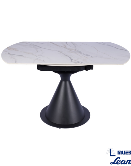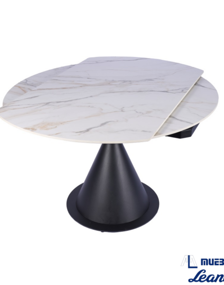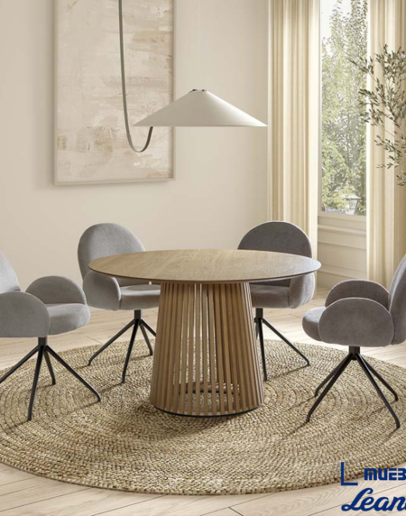 Mesa redonda de comedor extensible mediante un mecanismo de rotación con la tapa muy sencillo y práctico. Es un producto con mucha variedad de posibilidades.