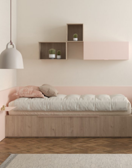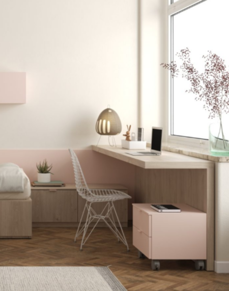 El dormitorio juvenil que tu hija siempre ha soñado tener, ¿lo vemos? Un escritorio que puedes adaptar a cualquier medida de habitación Tenemos para la cama diferentes elementos interiores de organización Dentro de la colección Up&Down hemos hecho unos elementos muy prácticos que puedes colocar en el interior de las camas abatibles. La bolsa multiusos