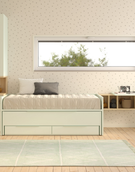Las camas abatibles crean un espacio libre para que los niños jueguen en el suelo, cuando son mayores la mesa plegable es un escritorio para que realicen sus deberes. Por la noche todo se transforma en una cama que siempre está lista para ser usada. Los dormitorios juveniles de jotajotape son prácticos, versátiles y se adaptan