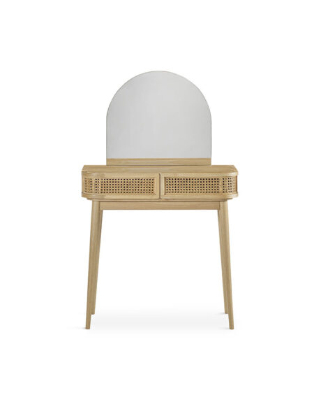 La mesa de estudio modelo 74500 de Hispanohogar con estructura metálica disponible en color blanco o negro, con dos cajones y un hueco central. Diseño de estilo nórdico con tapa en acabado estratificado de alta densidad.