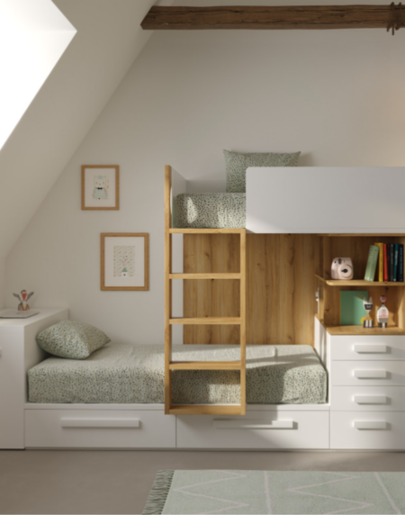 ¿Estáis en busca y captura de una litera con cajones y armario? Te traemos una opción perfecta para dos hermanos u hermanas que comparten dormitorio.