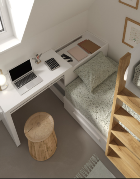 A diferencia de las literas fijas, las camas abatibles casi no ocupan espacio una vez están cerradas. El lugar que queda libre se puede aprovechar para muchos usos durante el día, y por la noche, las camas se abren de manera fácil y segura para