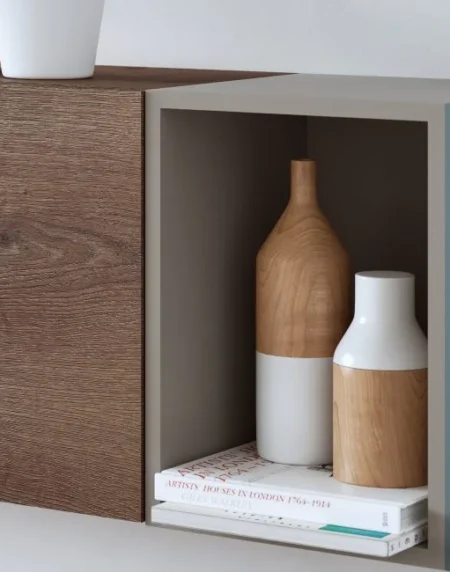 Composición acabada en chapa natural y lacado Arena Mate, marca la sofisticación de tu hogar.