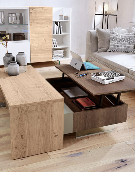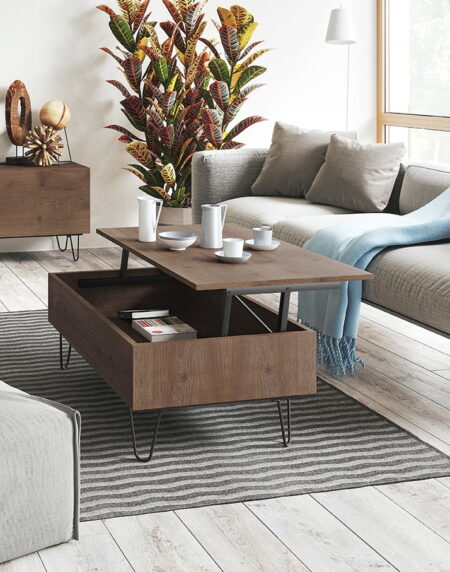 Mesa de centro elevable acabada en Roble Humo.