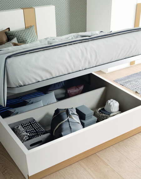 Dormitorio acabado en Blanco Mate y Roble Liso.
