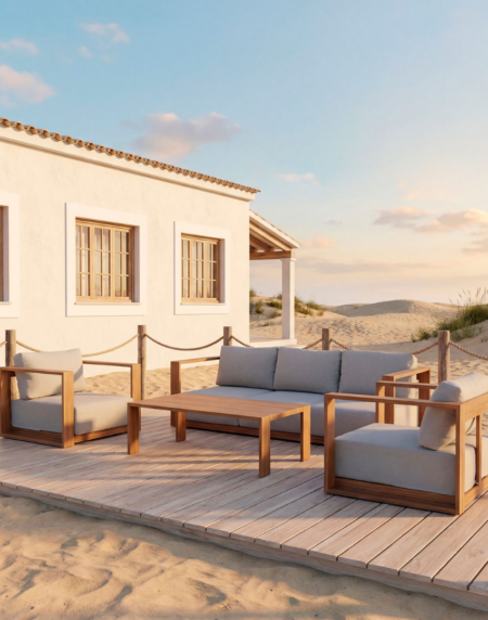 El conjunto exterior Altea es la elección ideal para quienes buscan combinar comodidad, diseño y resistencia en sus espacios al aire libre. Está compuesto por un sofá, dos butacas y una mesa de centro, ofreciendo todo lo necesario para crear un ambiente acogedor y funcional en terrazas, jardines o porches.