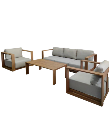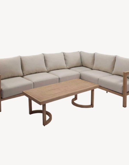 La rinconera exterior Ava es la solución perfecta para quienes desean aprovechar al máximo su espacio al aire libre con un diseño moderno y elegante. Su estructura en aluminio con acabado efecto madera combina resistencia y ligereza, asegurando durabilidad frente a la humedad, el sol y otros agentes externos. Los