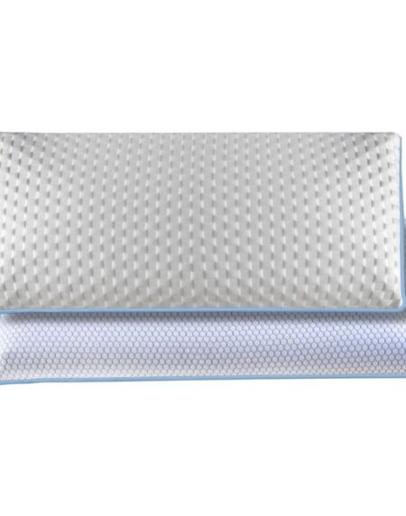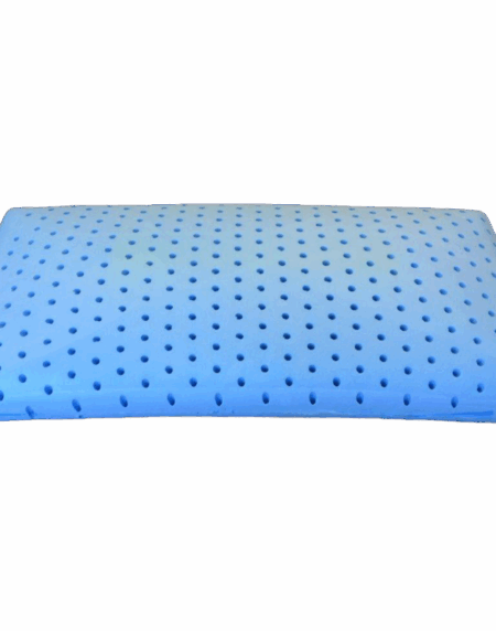 Almohada Viscoelástica inyectada en molde, fabricada añadiendo Gel líquido en la mezcla para un descanso refrescante. Su núcleo perforado facilita la transpiración aumentando el efecto de frescor.