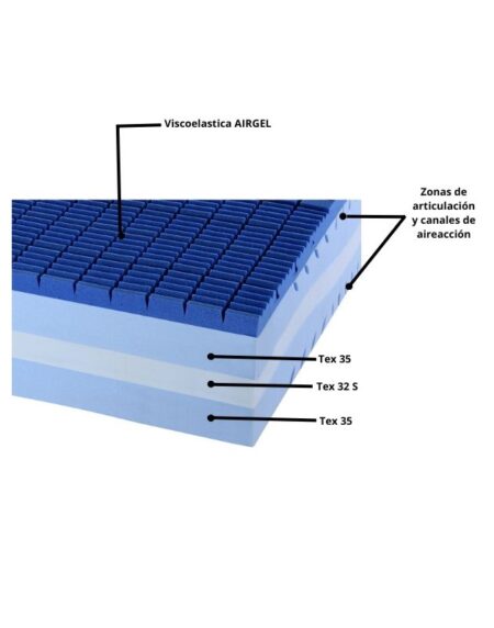 Está compuesta por un producto efecto gel: el Polargelfoam ®, una extraordinaria espuma de poliuretano de 55kg/m3 de densidad, no tóxica y libre de sustancias