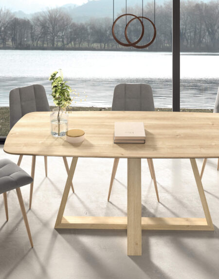 Mesa diseño de pata Uve para tapas gruesas de 8 cm. Incorpora la posibilidad de posicionar la pata en exterior o interior. Ahora muchas más medidas. Una mesa consistente y de gran capacidad.