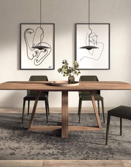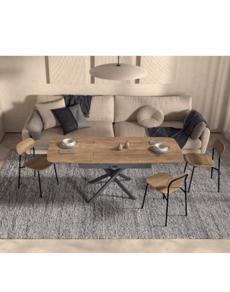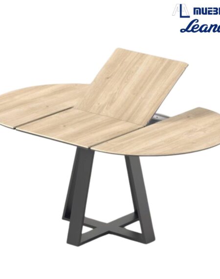 Extensible con volteador y sistema de apertura sincronizado. Color nogal tierra elige entre pata de madera o metálica.