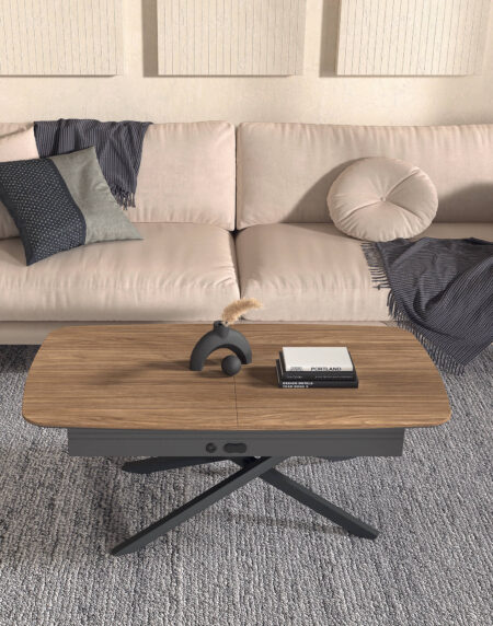 Con la opción de tapa extensible tendrás una mesa de centro y comedor y en poco espacio podrás ampliar tus invidados. Elige la altura que prefieras entre 51 y 82 cm.
