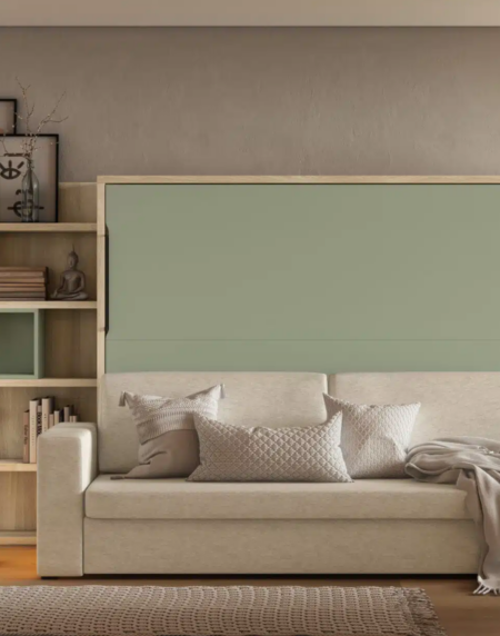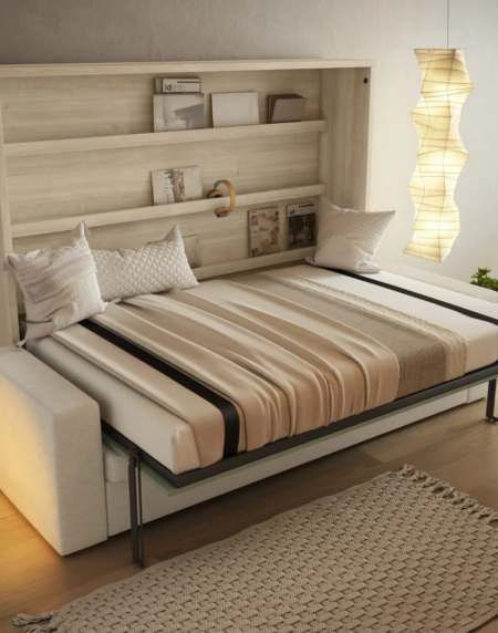 Las camas abatibles dobles con sofá son una buena opción para administrar mejor el espacio en el dormitorio tanto de invitados como en un dormitorio habitual. Encontraréis todas las posibilidades, con o sin sofá. Medidas: disponible para colchón de 90×90, 135×190 y también de 150×190.