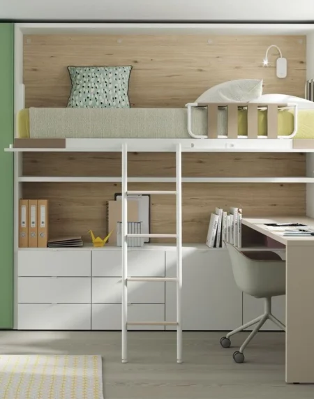 ¿Tienes una habitación pequeña? La cama alta con escritorio debajo será una de las soluciones. Encontrar los muebles que definan nuestro espacio a veces es un poco difícil, pero no imposible. Con el nuevo catálogo de muebles juveniles delulu, el proyecto personalizado está asegurado, y más si necesitamos muebles que se adapten