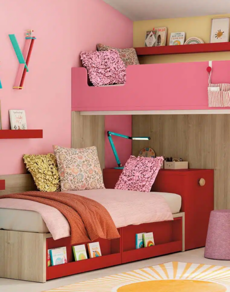 Una litera ofrece muchas posibilidades, especialmente en espacios reducidos. Dos hermanos podrán compartir momentos inolvidables y si escogéis la opción con cama nido, además, podrán invitar a un amigo.