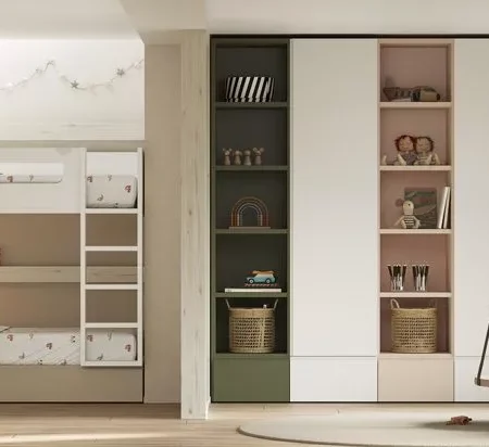 Las literas abatibles dobles te ofrecen muchas posibilidades para que puedas configurar el espacio ideal para dos niños.