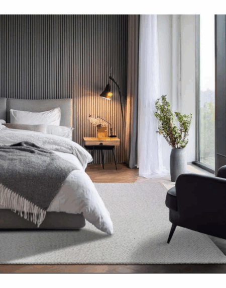 Alfombra de poliéster reciclado con una espesura de 8.5mm disponible en tres medidas: 160x230 / 200x290 / 240x340