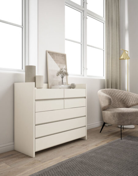 Otro de los muebles auxiliares importantes dentro de los dormitorios son las cómodas. Este mueble te dará la posibilidad de ordenar la ropa y otros objetos. Como en el caso anterior las cómodas son muebles auxiliares que deberán combinar con el resto del dormitorio. Alguna de las ideas para complementar estos muebles auxiliares es poner un espejo vertical al lado de la cómoda, dándole amplitud al espacio.