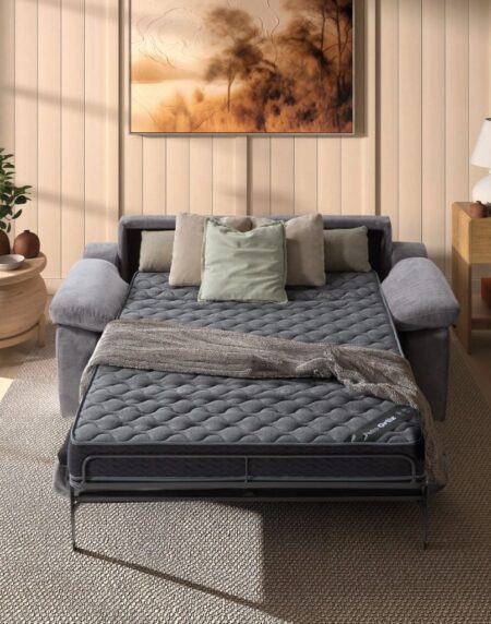 El sofá MELANI es deslizante con carro en sus asientos una espuma viscoelástica para tu confort. La tela es desenfundable en el respaldo y asientos.