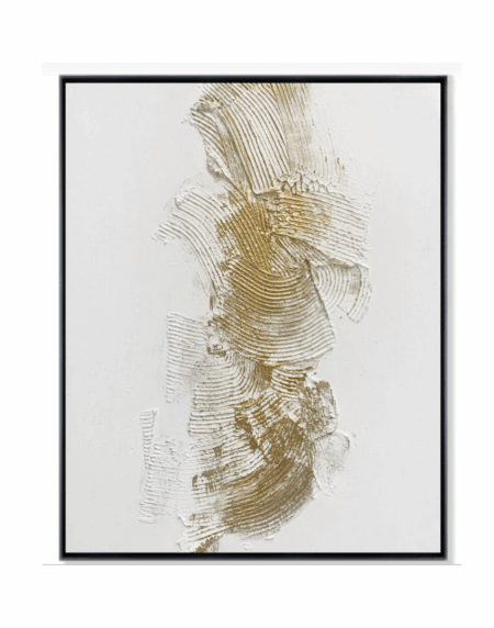 Obra abstracta con una composición de texturas orgánicas y tonos neutros. Su acabado sofisticado y sus sutiles contrastes crean un efecto elegante y armonioso, ideal para espacios modernos.