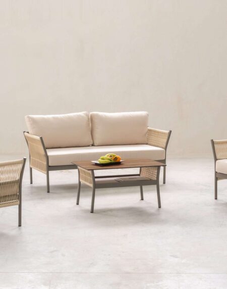 El Conjunto de Jardín de Cuerda Cloe-14 es la opción ideal para quienes buscan comodidad, estilo y durabilidad en su espacio exterior. Diseñado con una estructura resistente de aluminio recubierta de cuerda náutica trenzada a mano, este set combina elegancia y funcionalidad. Sus asientos están elaborados con cuerda resistente a la intemperie