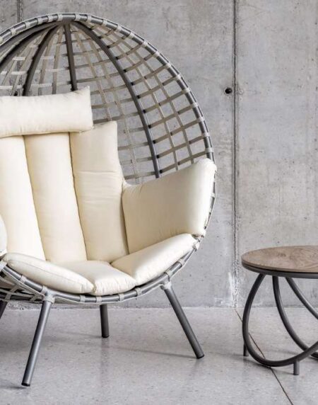 El sillón colgante Valery es una pieza de mobiliario diseñada para brindar confort y estilo en espacios exteriores como jardines, terrazas y balcones. Su estructura de aluminio y cuerda garantiza durabilidad y resistencia a la intemperie, mientras que su diseño en forma de huevo envuelve el cuerpo para ofrecer una experiencia de