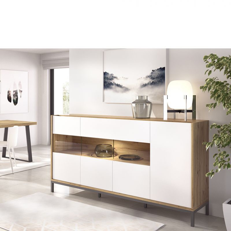 Aparador de melamina acabada en color Nordic y Blanco