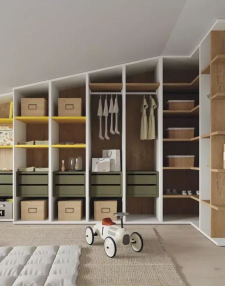 Hemos transformado el concepto armario de una sola pieza. Escoge el mobiliario según tu espacio: módulos abiertos, puertas arriba y abajo con un espacio diáfano en el centro, barra para colgar ropa, muchos o pocos cajones, etc.
