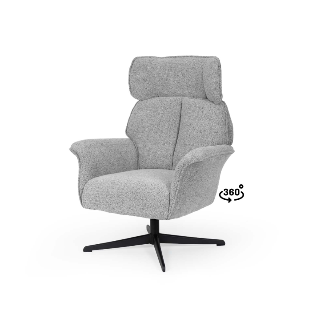 La butaca LYNN destaca por su diseño envolvente y sofisticado, con líneas que combinan suavidad y estructura para ofrecer una experiencia de descanso superior. Su respaldo alto con formas ergonómicas se adapta al cuerpo, mientras que los apoyabrazos ligeramente curvados aportan un plus de confort y elegancia.