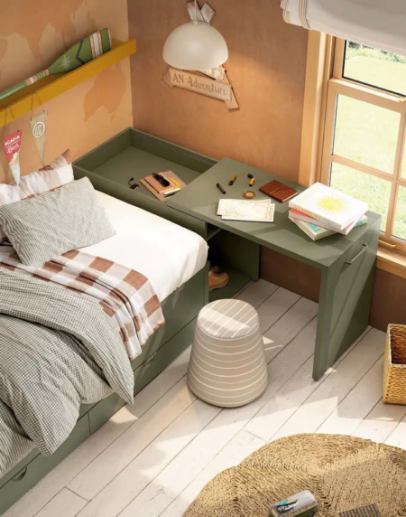 Cama con cajones inferiores, escritorio y armario grande de 5 puertas