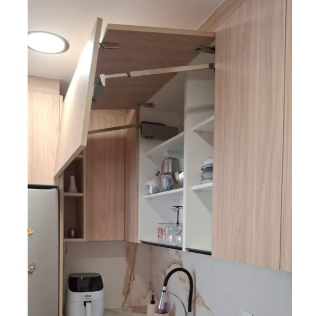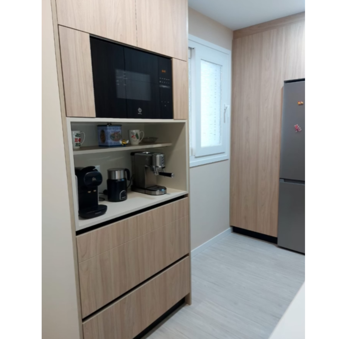Tirador Gola negro, apertura plegable, campana integrada y funcional zona café (o desayunador).