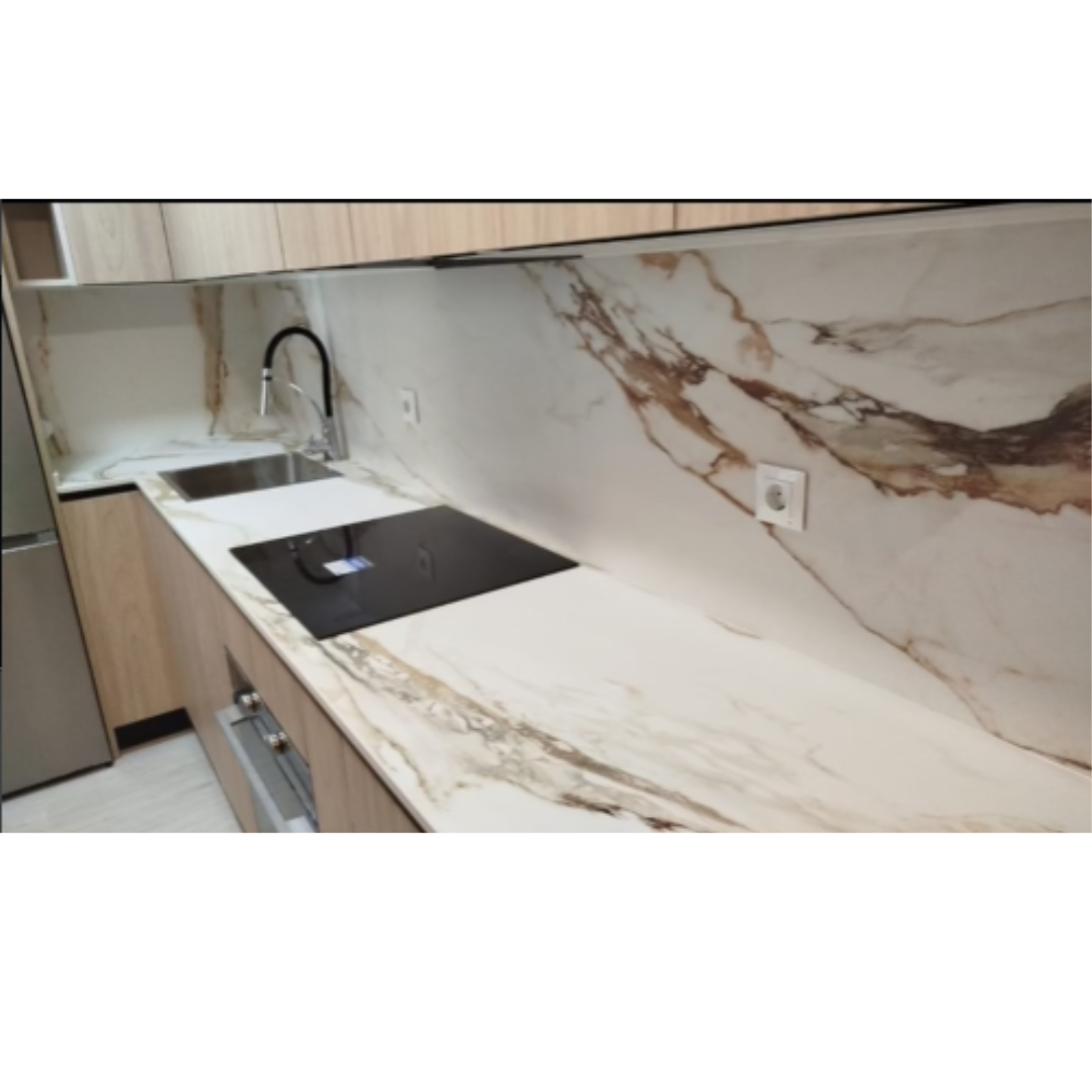 La calidez de la madera y la dureza de una encimera Porcelanica de ABK stone, el modelo Macchia Vecchia.