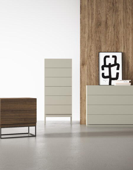 Nuestro modelo más universal. Perfecto para cualquier decoración, encaja muy bien en cualquier estilo. Cajones con guía oculta y apertura con uñeros laterales que son la seña de identidad del modelo.