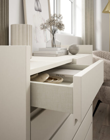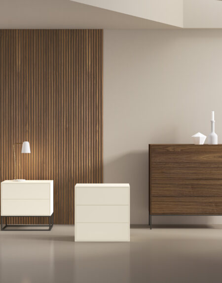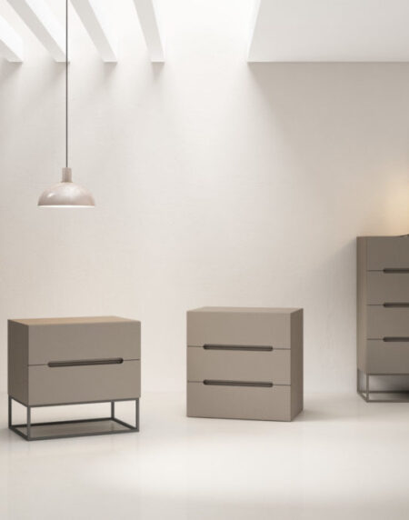 La colección Tigris se puede lacar en cualquier color del muestrario en mate o brillo, ral de cliente o en chapa de madera natural de roble, roble nudoso o nogal.