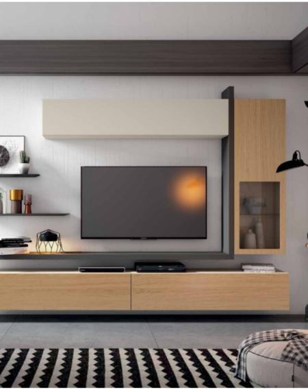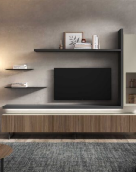 Imagina tu sala de estar con nuestro panel de roble de 300 cm, abrazando la pared donde cuelga la tele, la vitrina y los módulos. Es como crear un espacio que respira autenticidad y comodidad. El roble le da un toque natural y acogedor a tu hogar.