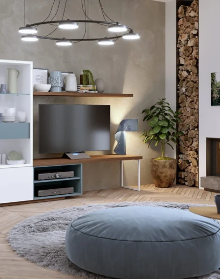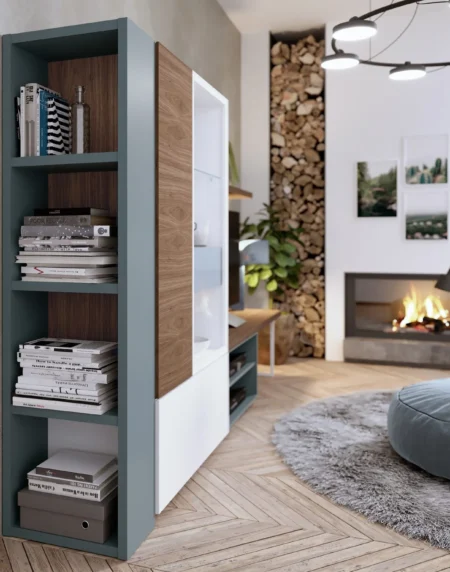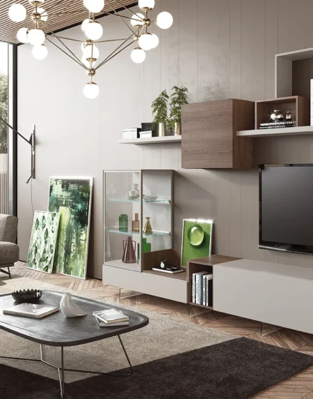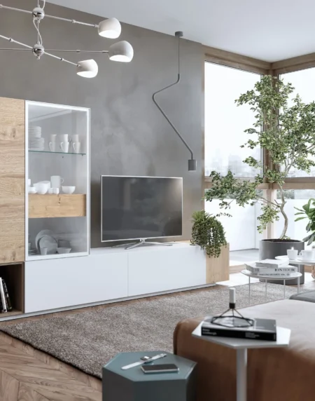 Formas geométricas en esta composición, así se pretende aportar serenidad y armonía, pero a la vez utilidad y capacidad. La elegante combinación de sus colores aportan bienestar a tu salón.