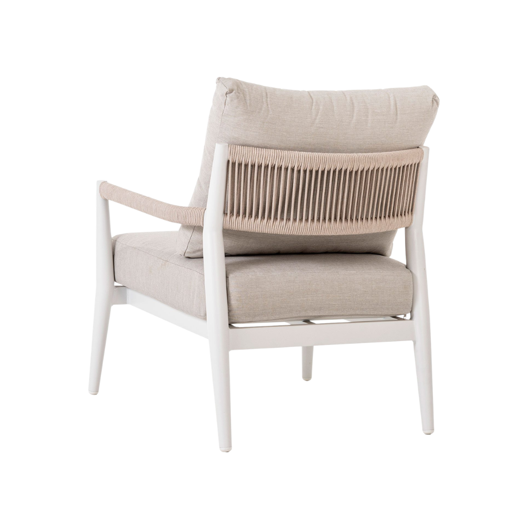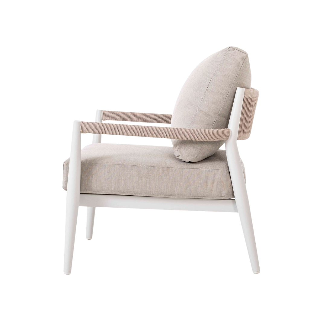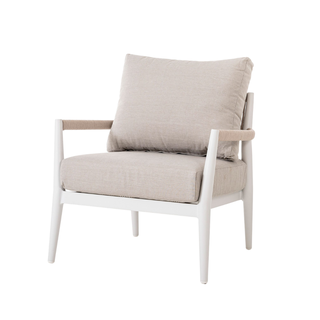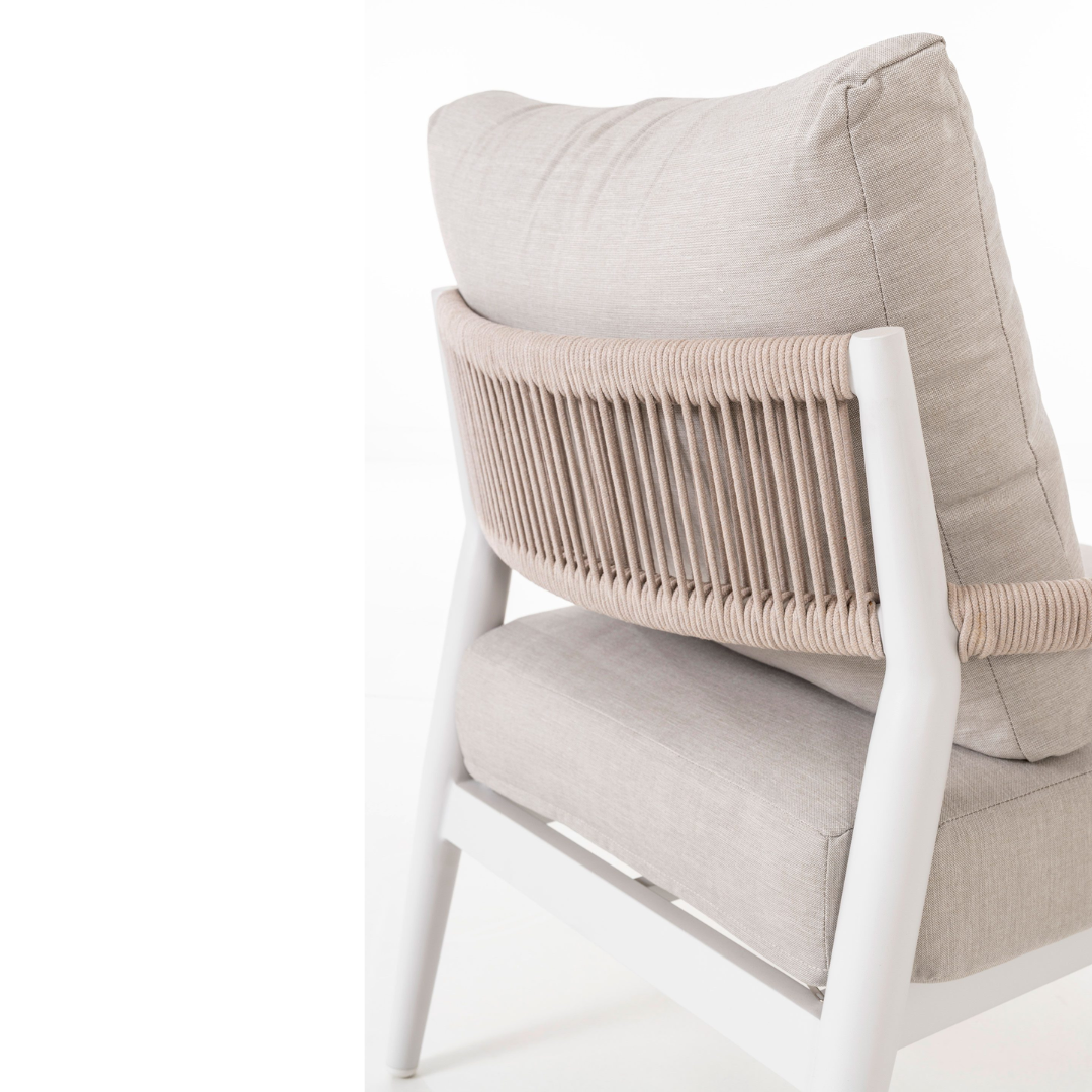 El set de terraza Formentor está diseñado para ofrecer confort y estilo en espacios exteriores. Incluye sofás y una mesa de centro con estructura de aluminio blanco, un material ligero, resistente y de fácil mantenimiento, ideal para ambientes al aire libre. Los asientos en tapizado beige aportan suavidad, comodidad y un contraste elegante que complementa el diseño moderno del conjunto. Su estilo versátil lo convierte en la opción perfecta para terrazas, jardines o porches, creando un ambiente acogedor y funcional. El set Formentor combina resistencia, diseño contemporáneo y confort, ofreciendo la solución ideal para disfrutar de momentos de relax y convivencia al aire libre.