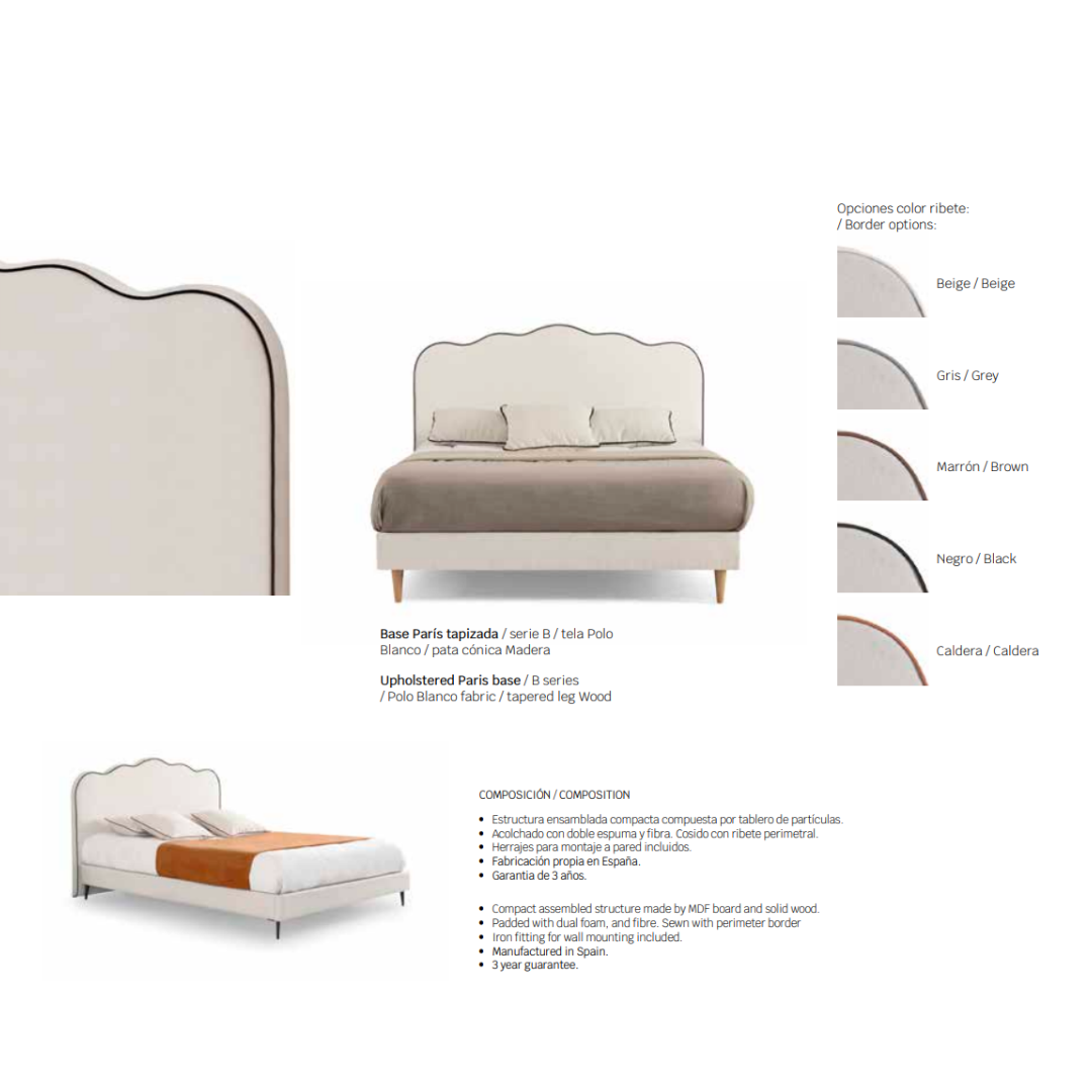 - Acolchado con doble espuma y fibra. Cosido con ribete perimetral.