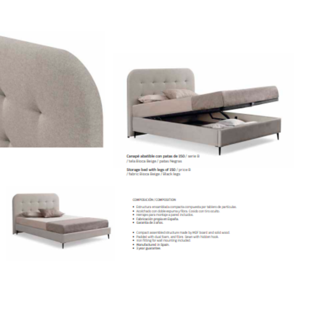 - Acolchado con doble espuma y fibra. Cosido con tiro oculto.