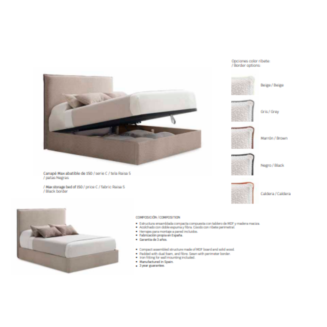 - Acolchado con doble espuma y fibra. Cosido con ribete perimetral.