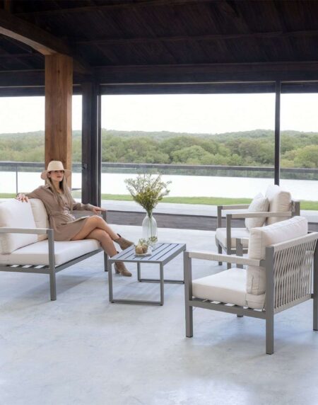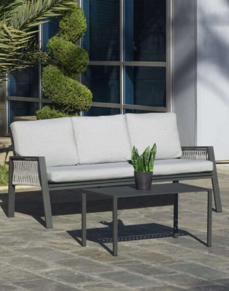Mesa auxiliar Bely. Estructura lacada en aluminio color blanco. Top mesa en cristal cerámico.